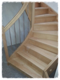 Cette escalier comporte 23 marches et 4 limons en hêtre massif ainsi qu'une main courrante avec finition tube aluminium